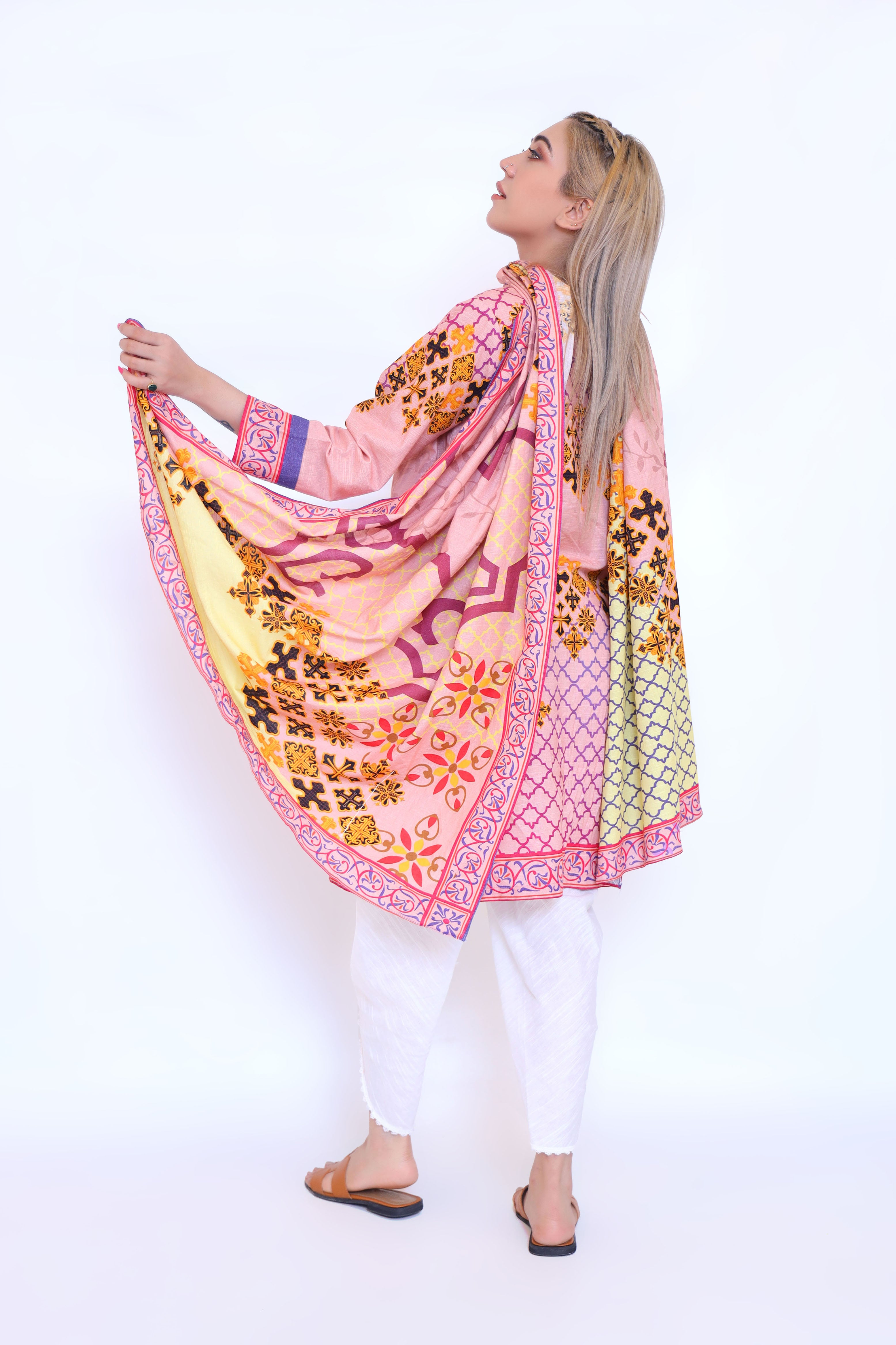 LADIES 3PC EMBROIDERY STITCHED SUIT WITH SHAMOZ SILK PRINTED DUPATTA -