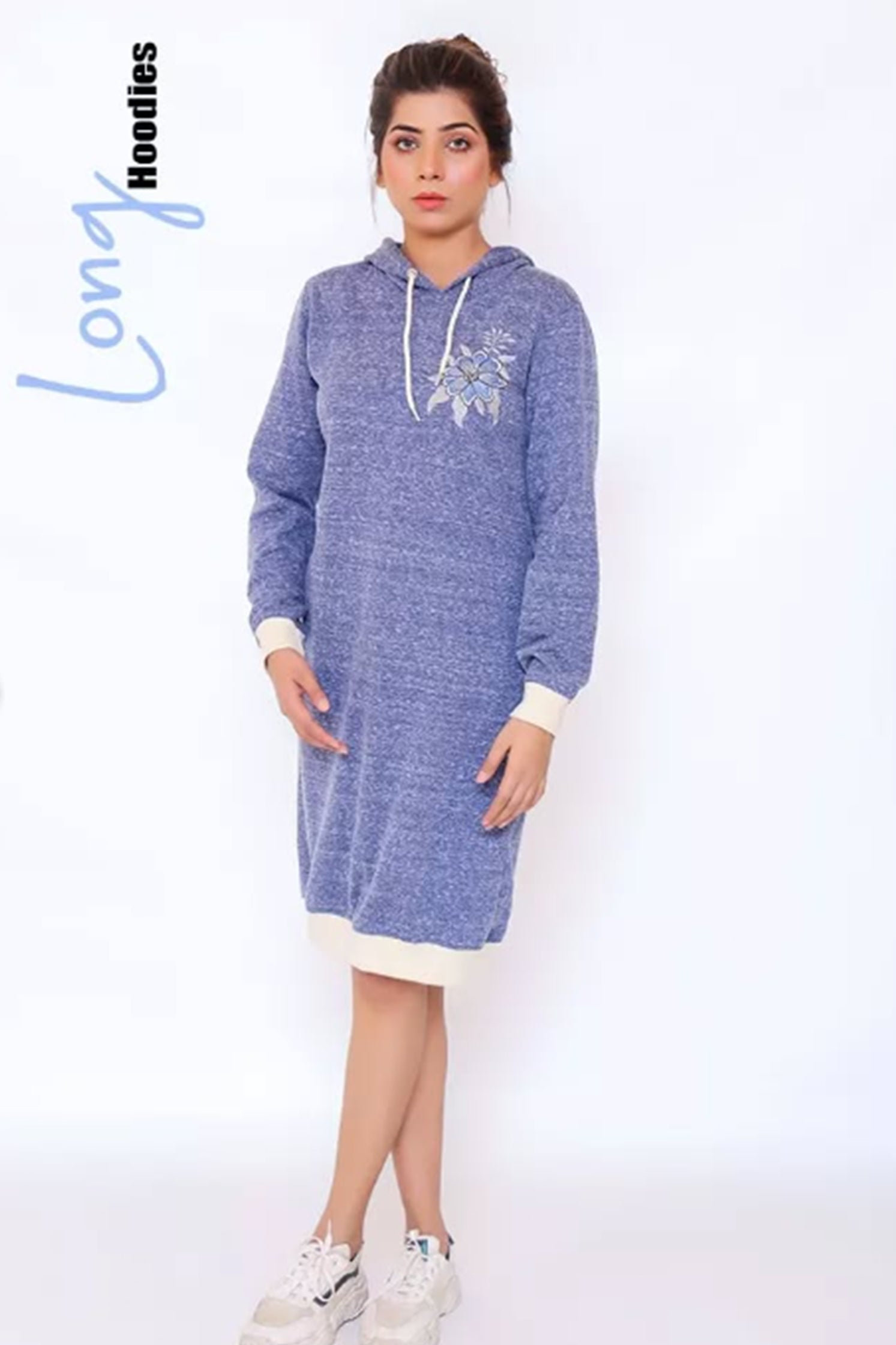 FLORAL EMB LONG HOODIE -