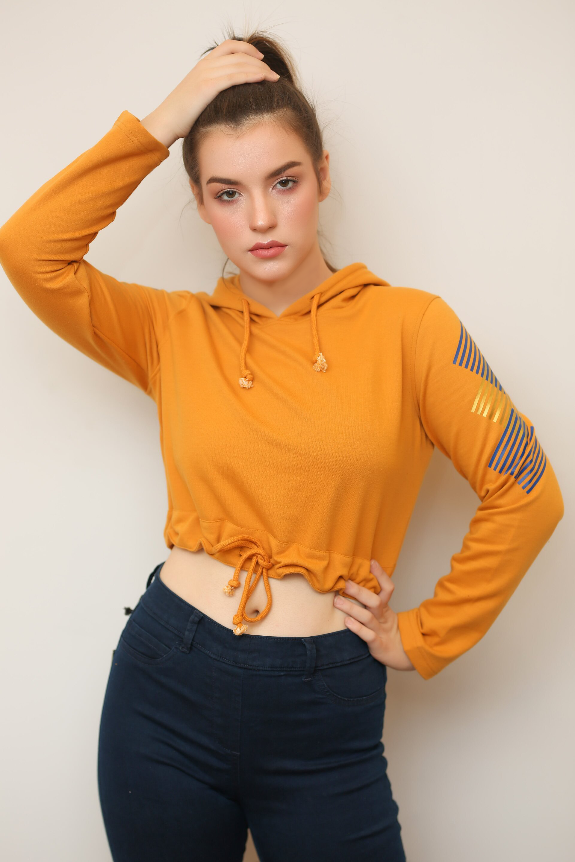 MUSTARD EMB LONG HOODIE -