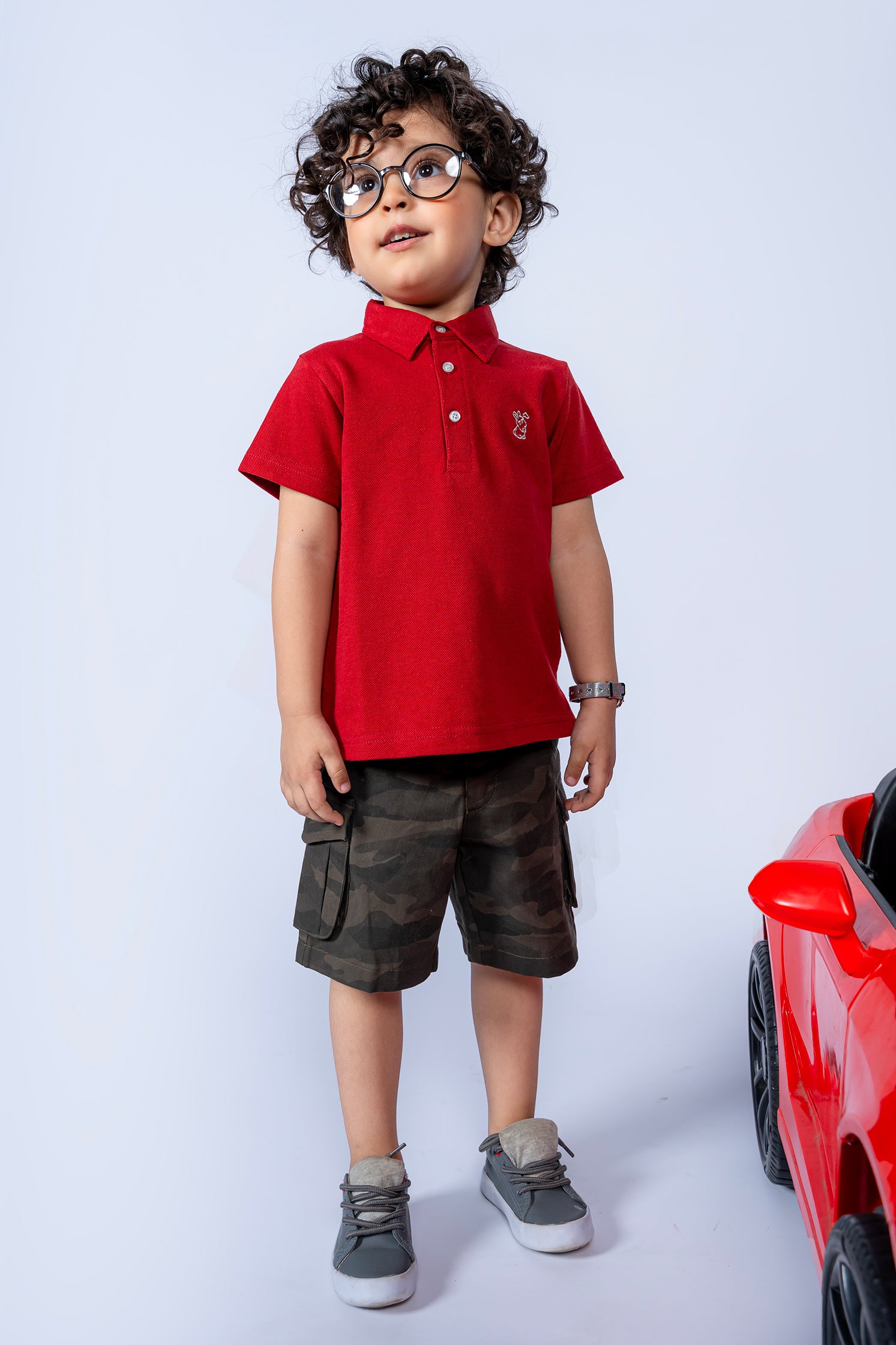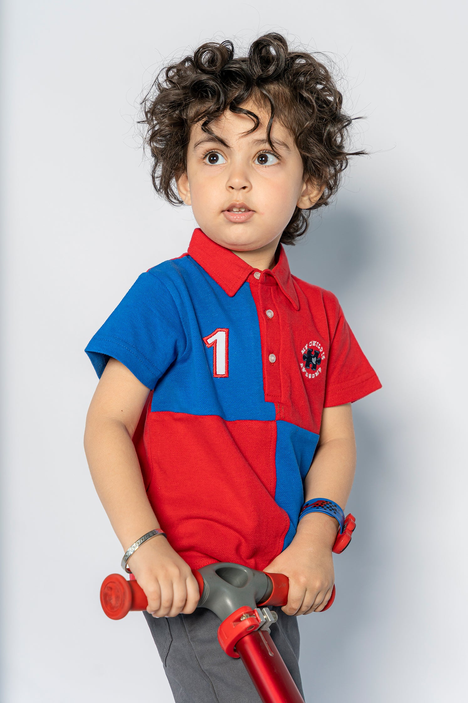 KID'S POLO RED AND BLUE FRONT EMBROIDERY -