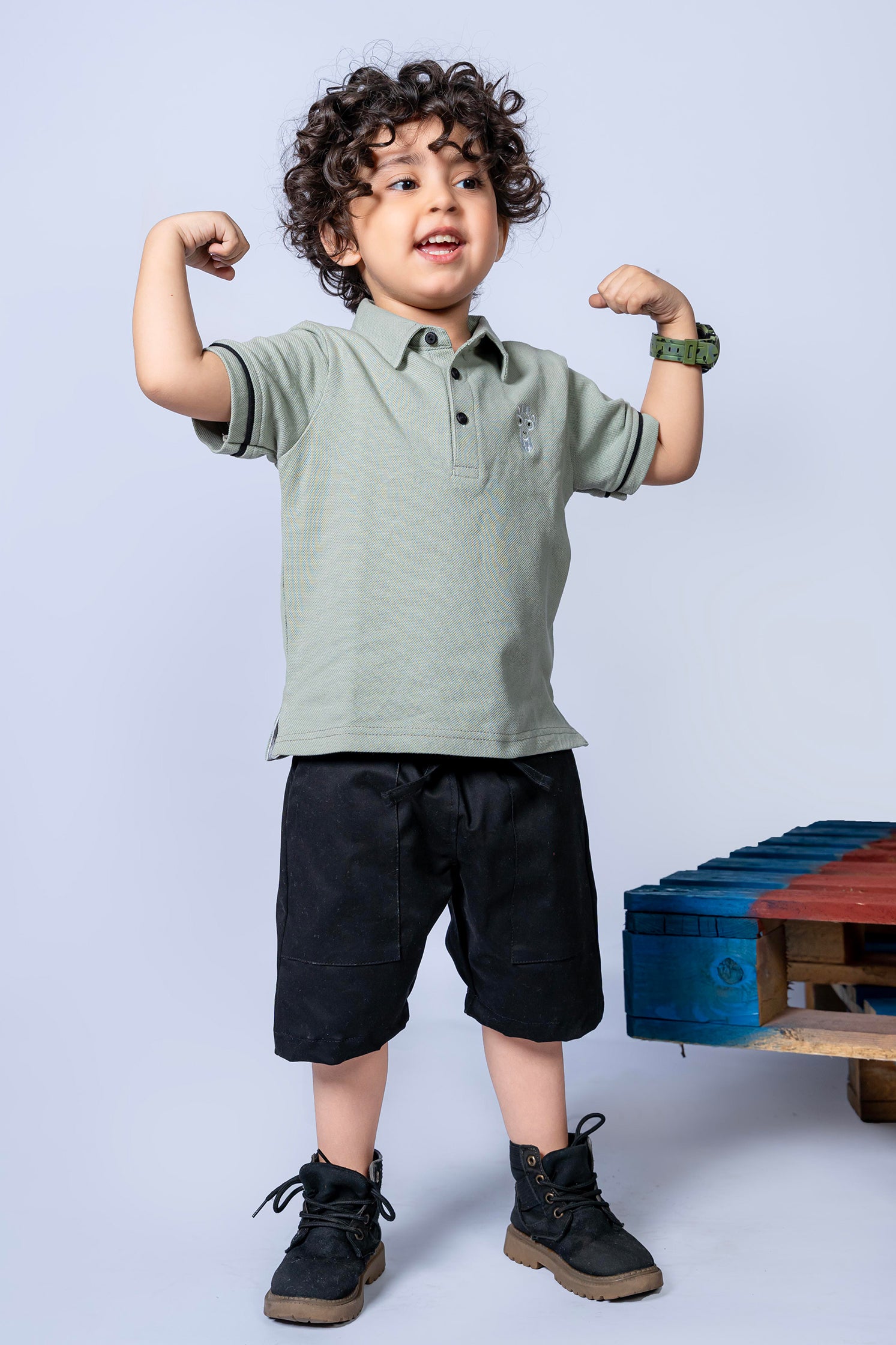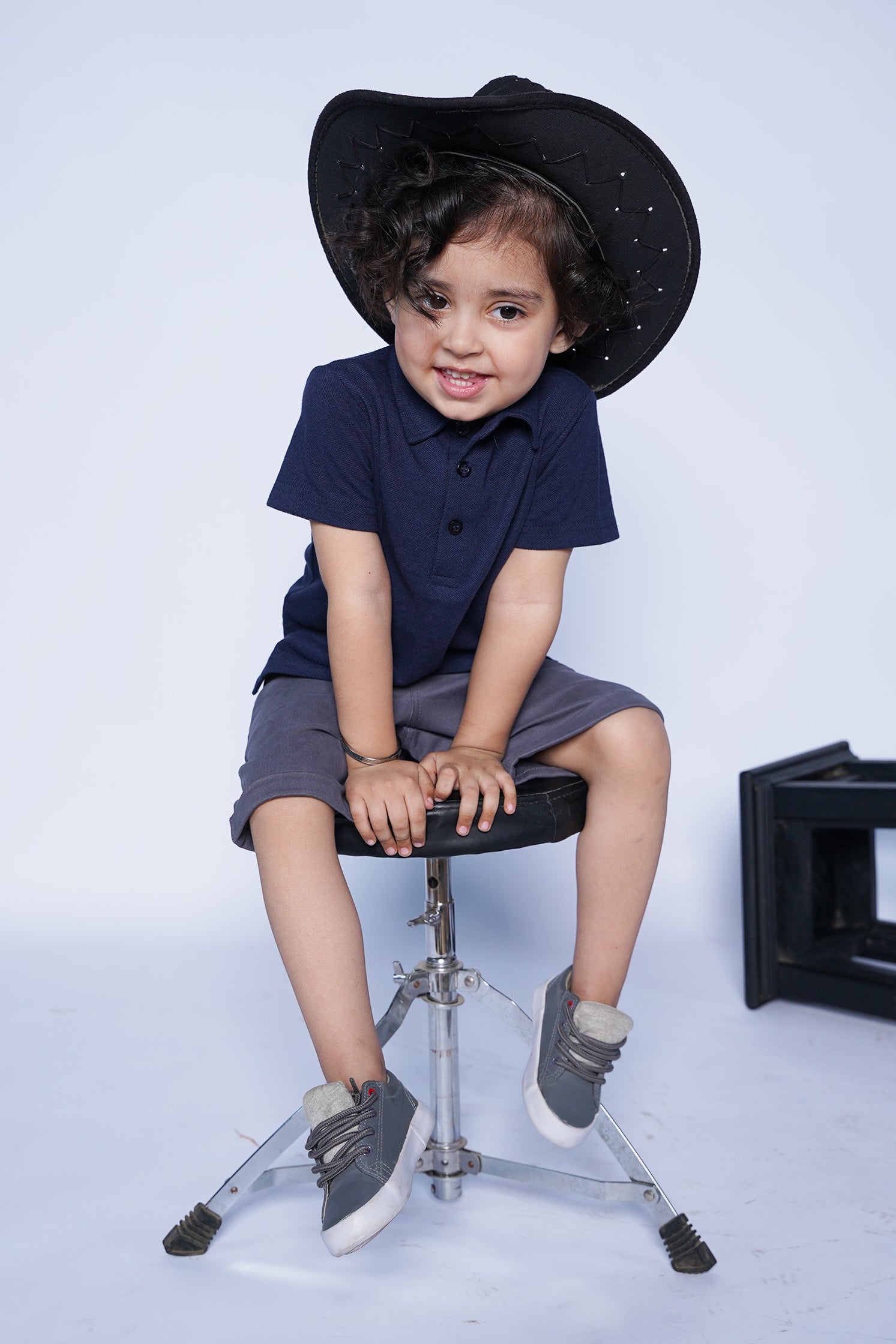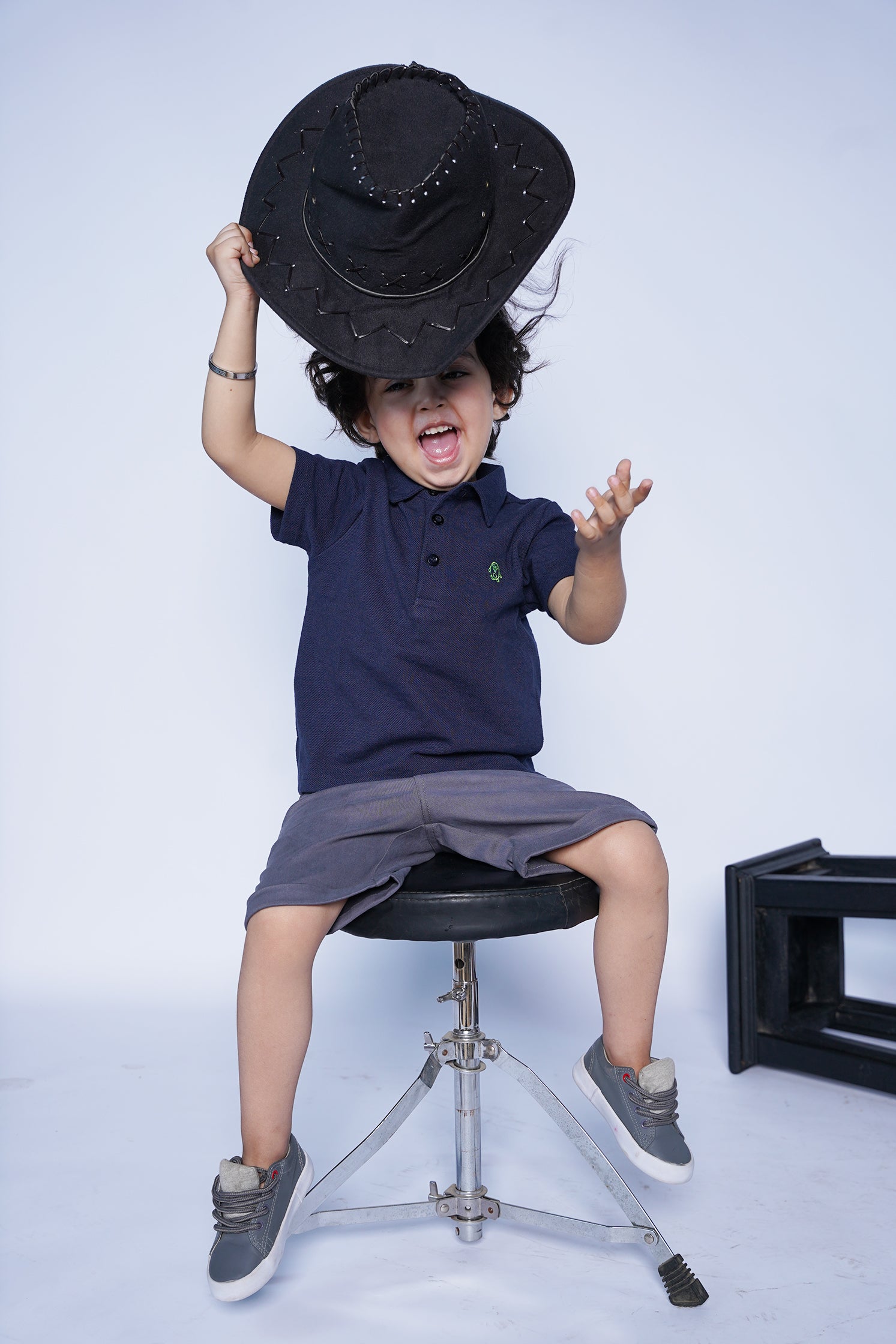 KID'S POLO BLACKISH GRAY FRONT EMBROIDERY -