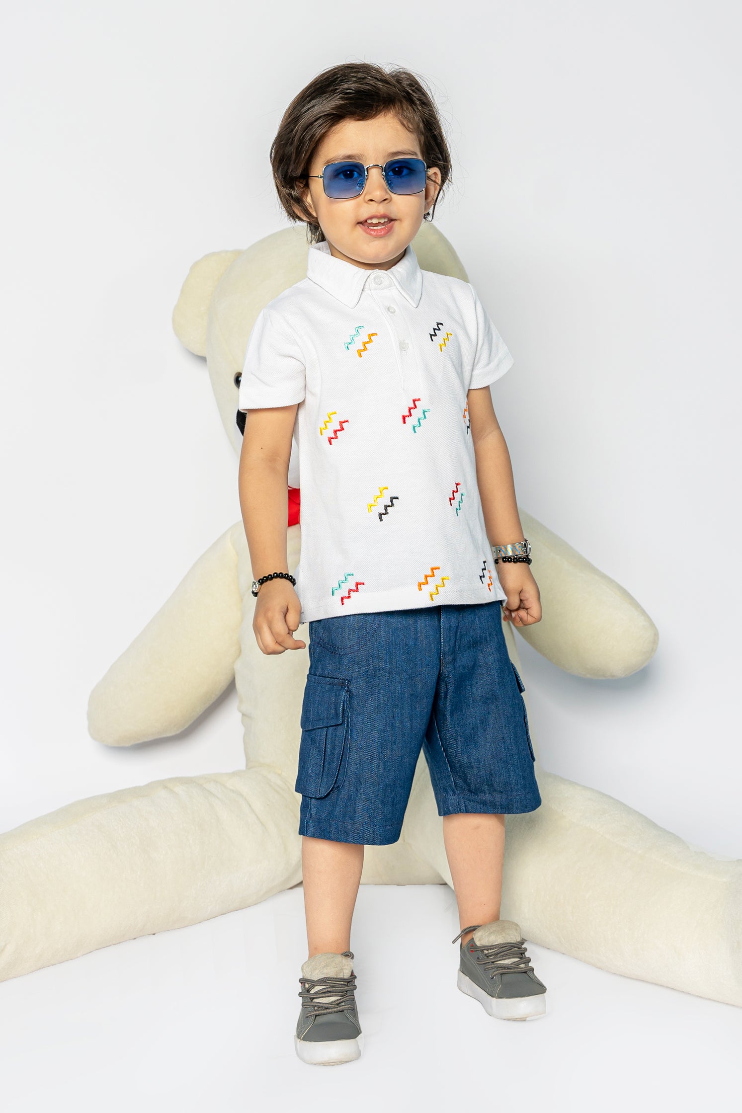 KID'S POLO WHITE ALL OVER EMBROIDERY -