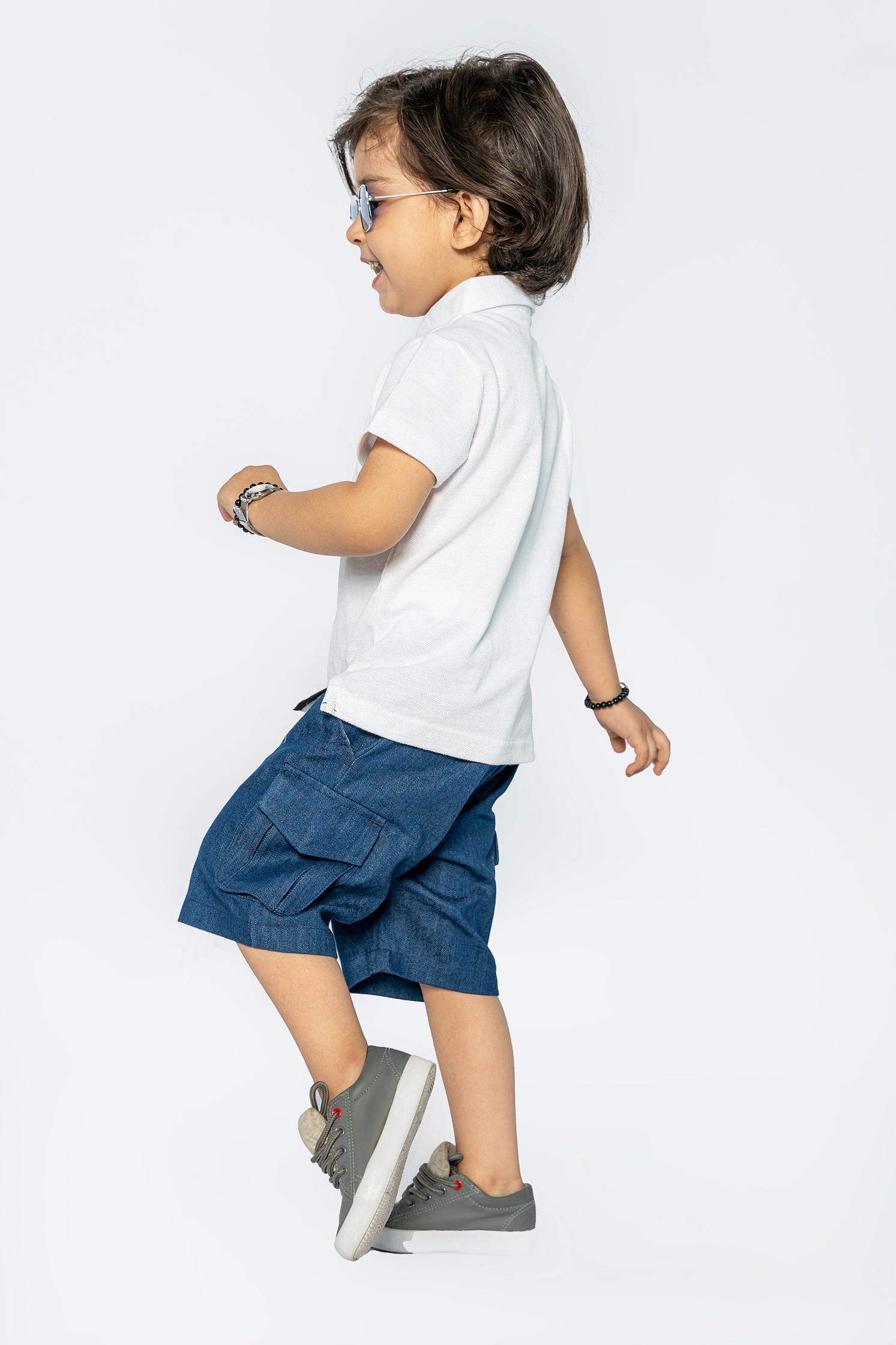 KID'S POLO WHITE WITH FRONT STAR EMBROIDERY -