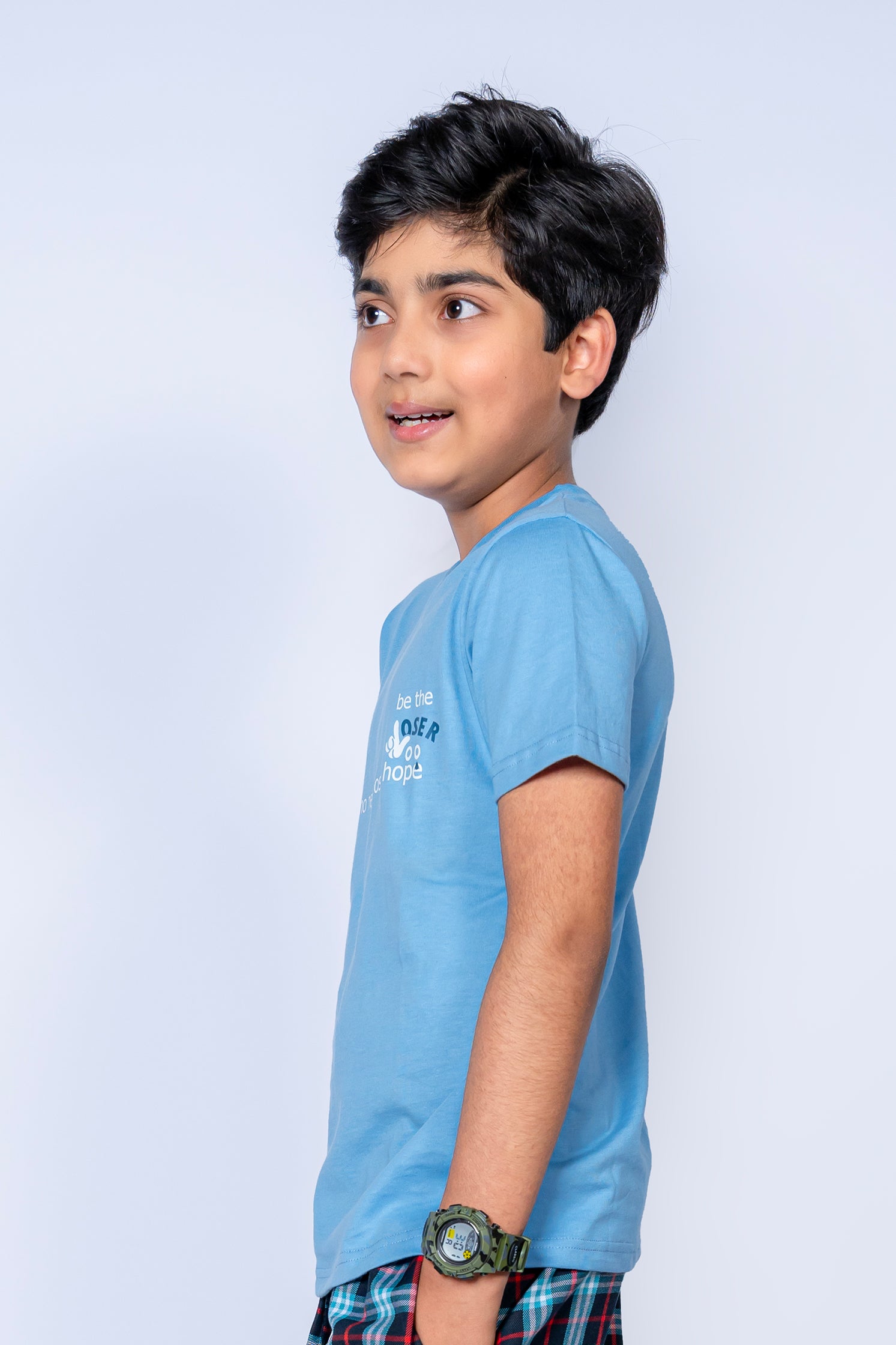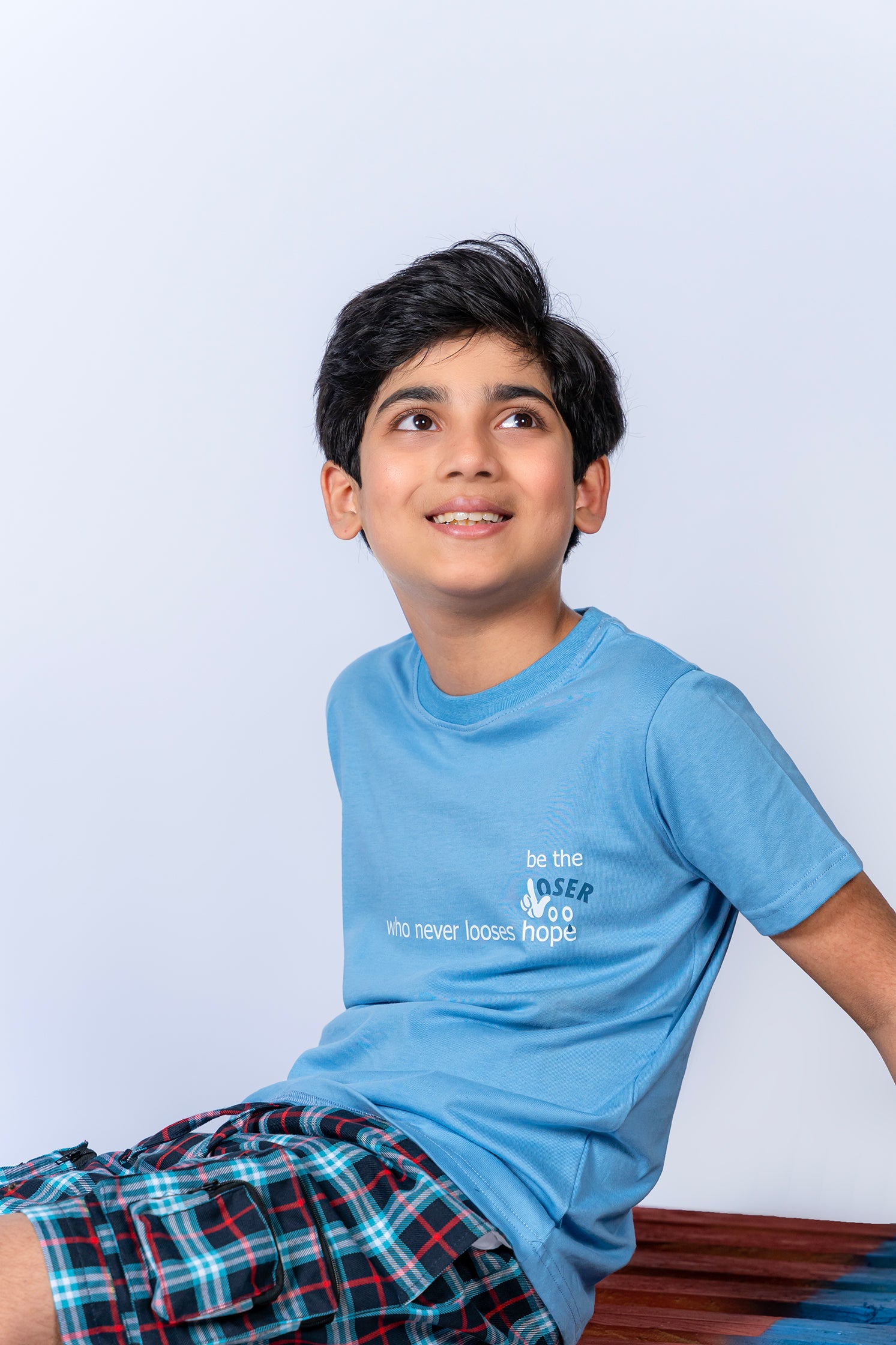 BOY'S T-SHIRT CEIL BLUE "WHO NEVER LOOSE HOPE" PRINTING