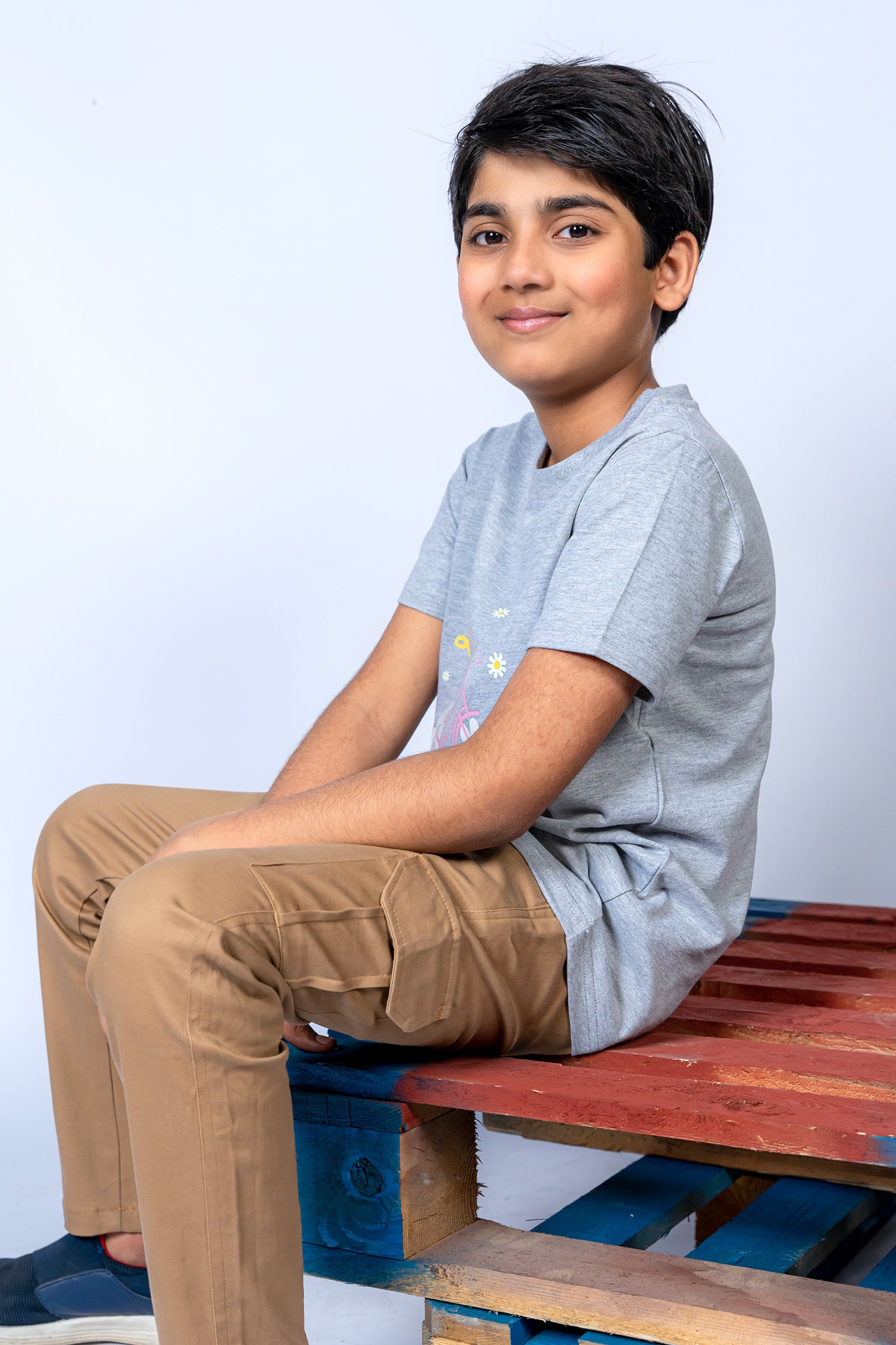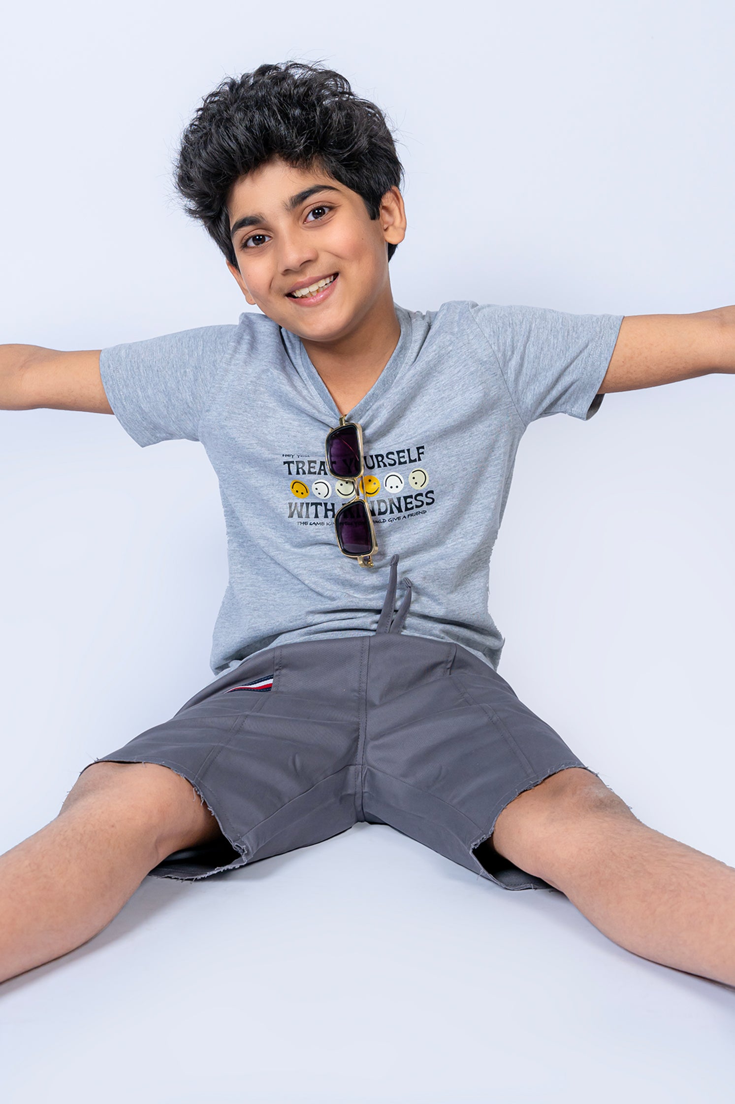 BOY'S T-SHIRT GRAY WITH "TREAT YOURSELF" PRINTING -