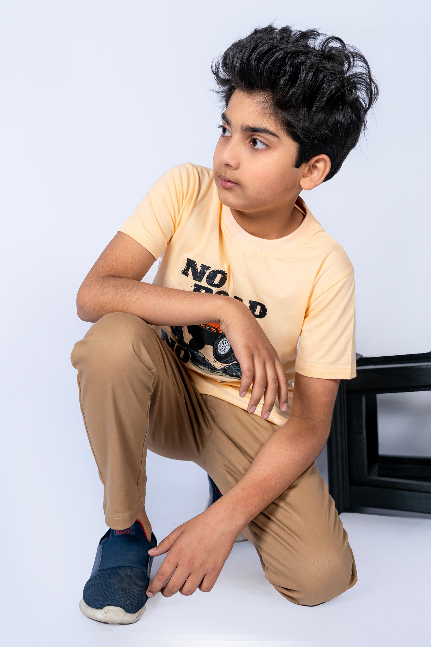 BOY'S T-SHIRT BEIGE WITH "NO ROAD NO CAR" PRINTING -