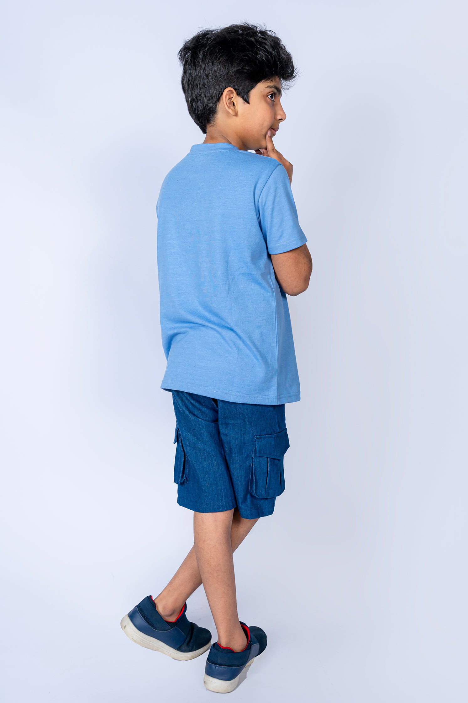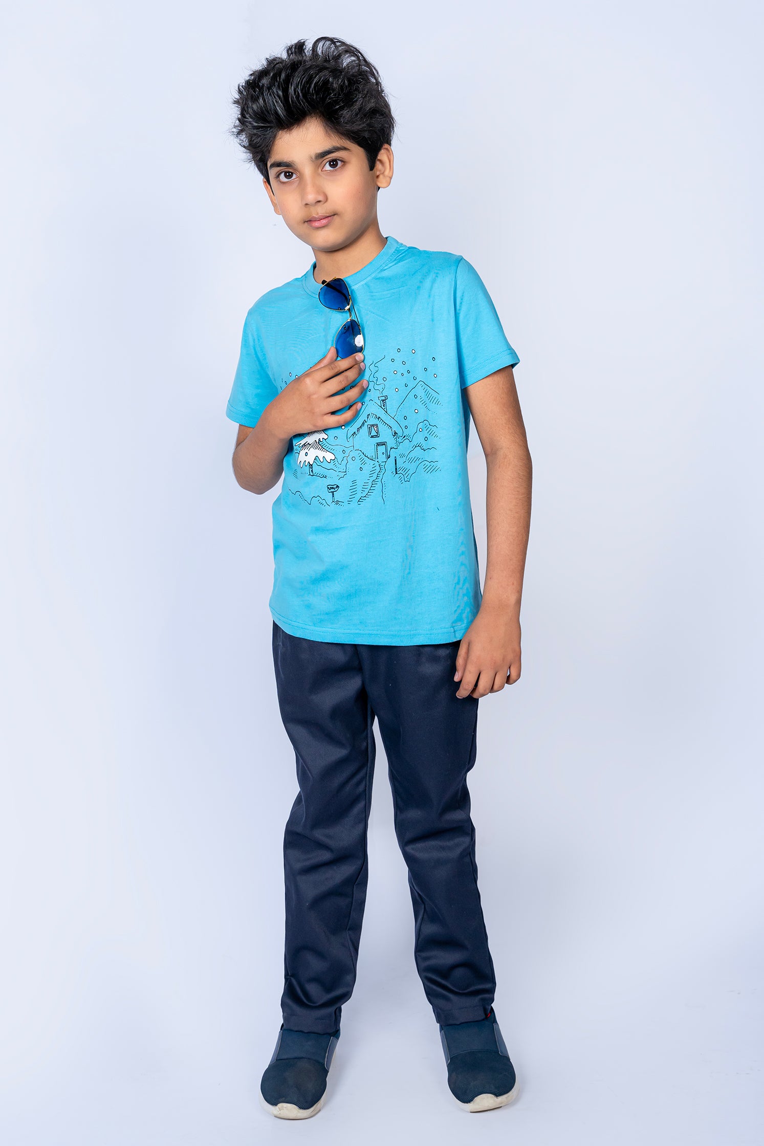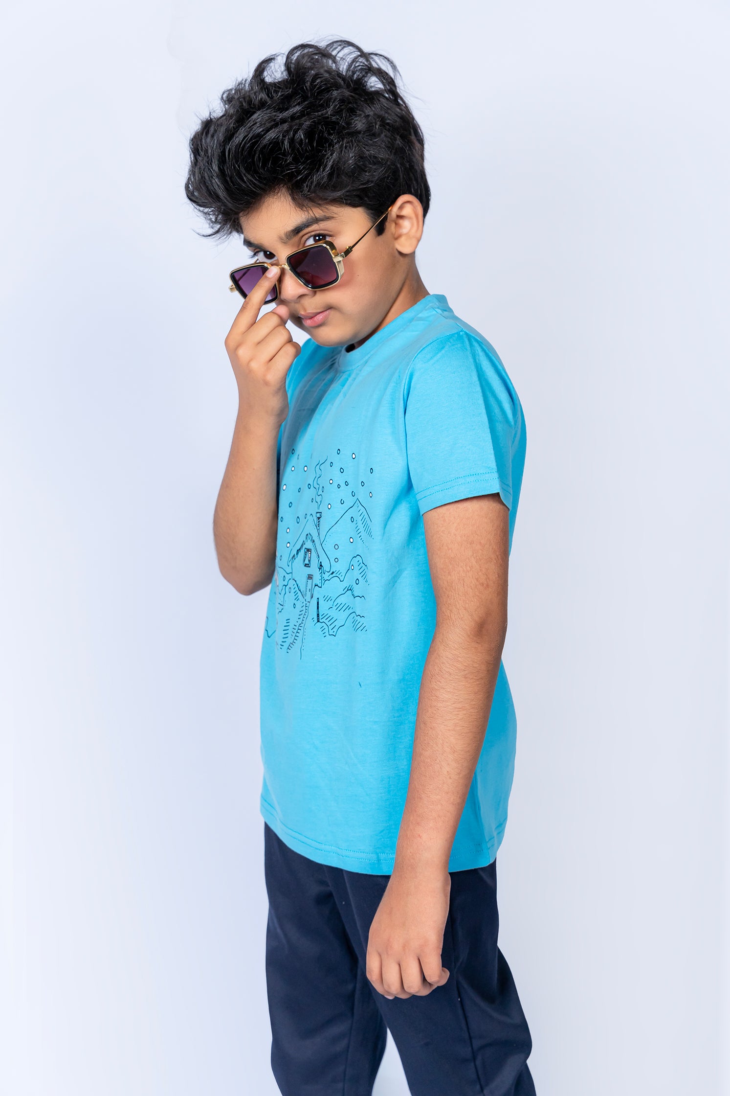 BOY'S T-SHIRT CEIL BLUE WITH "HOUSE" PRINTING -
