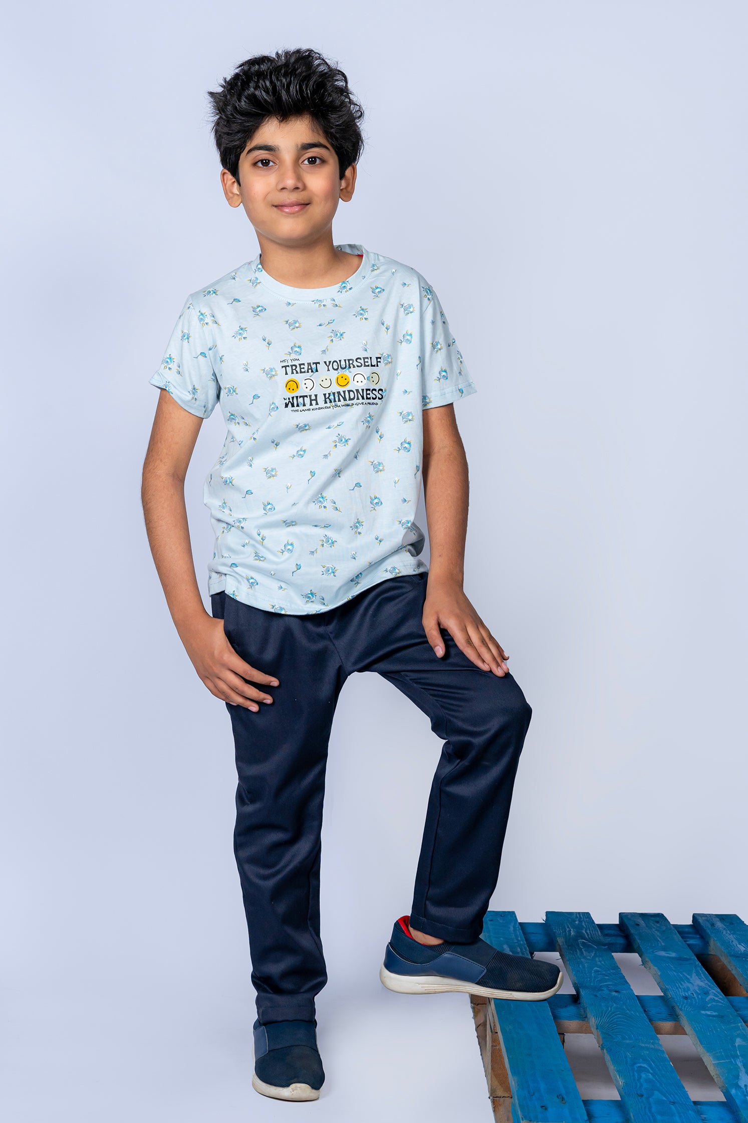 BOY'S T-SHIRT POWDER BLUE WITH "TREAT YOURSELF" PRINTING -