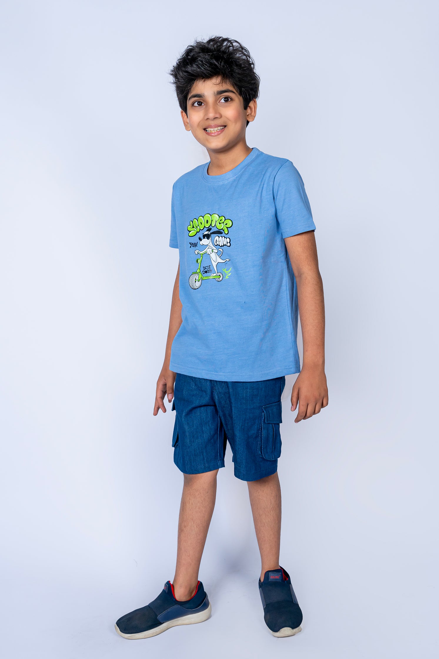 BOY'S T-SHIRT CEIL BLUE WIHT "SCOOTER" PRINTING -