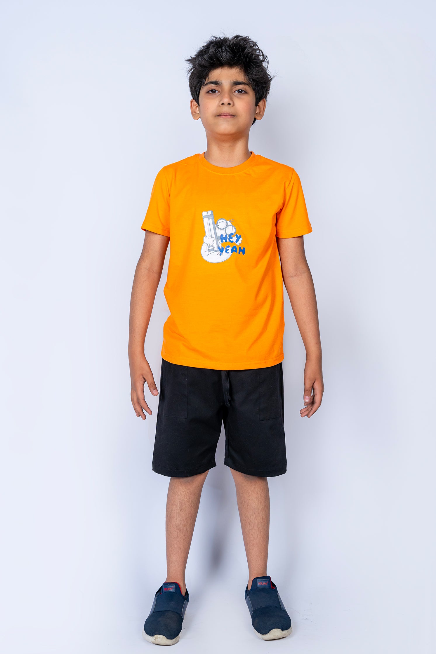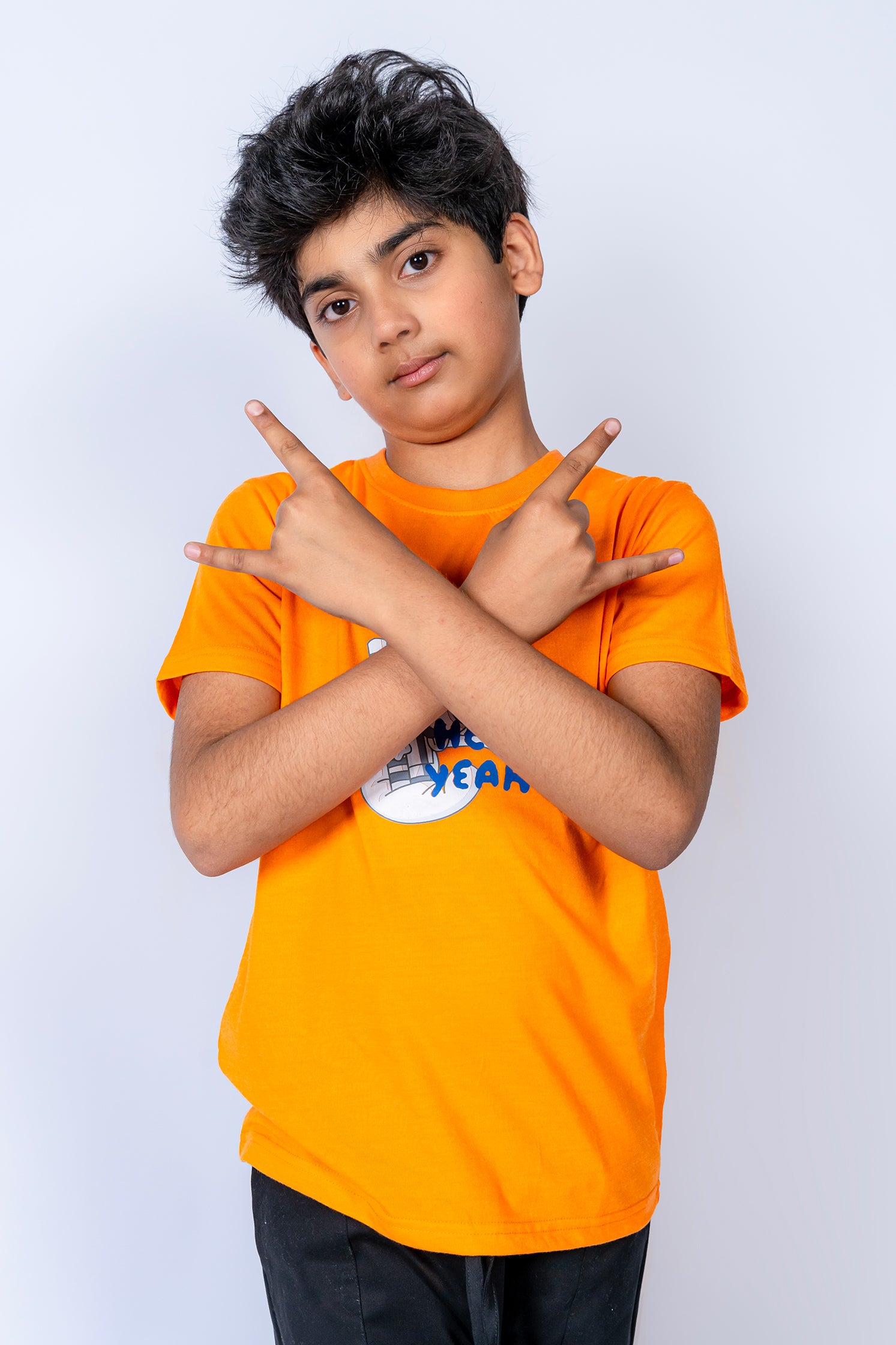 BOY'S T-SHIRT ORANGE WITH "HEY YEAH" PRINTING -