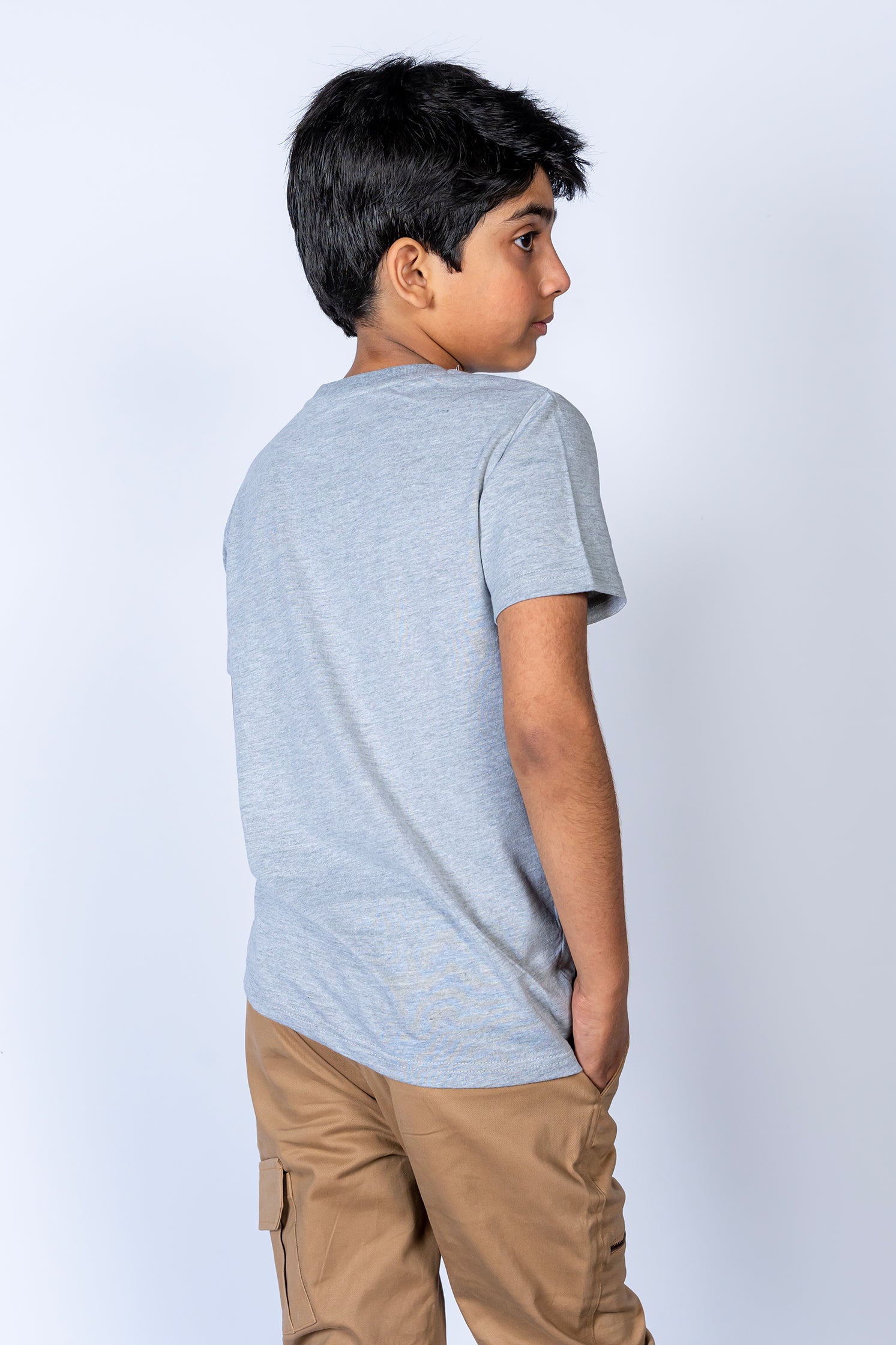 BOY'S T-SHIRT LIGHT GRAY WITH "LETS GO SOMETHING FUN" PRINTING -