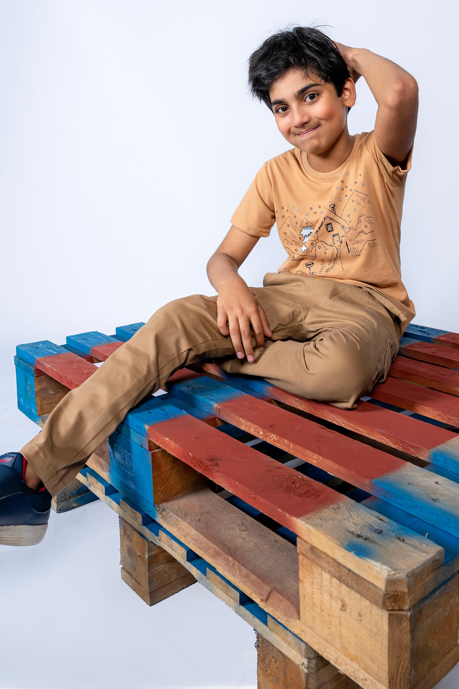 BOY'S T-SHIRT CAMEL WITH "HOUSE" PRINTING -